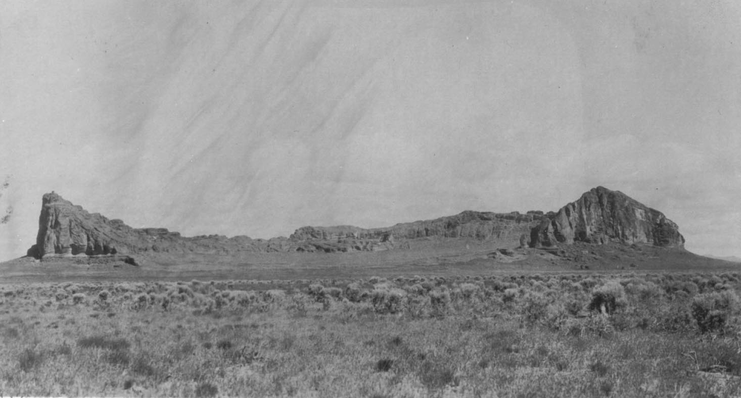 Fort Rock Cave is located in rock formation slightly right and farther back in photo. Courtesy Robert Henderson