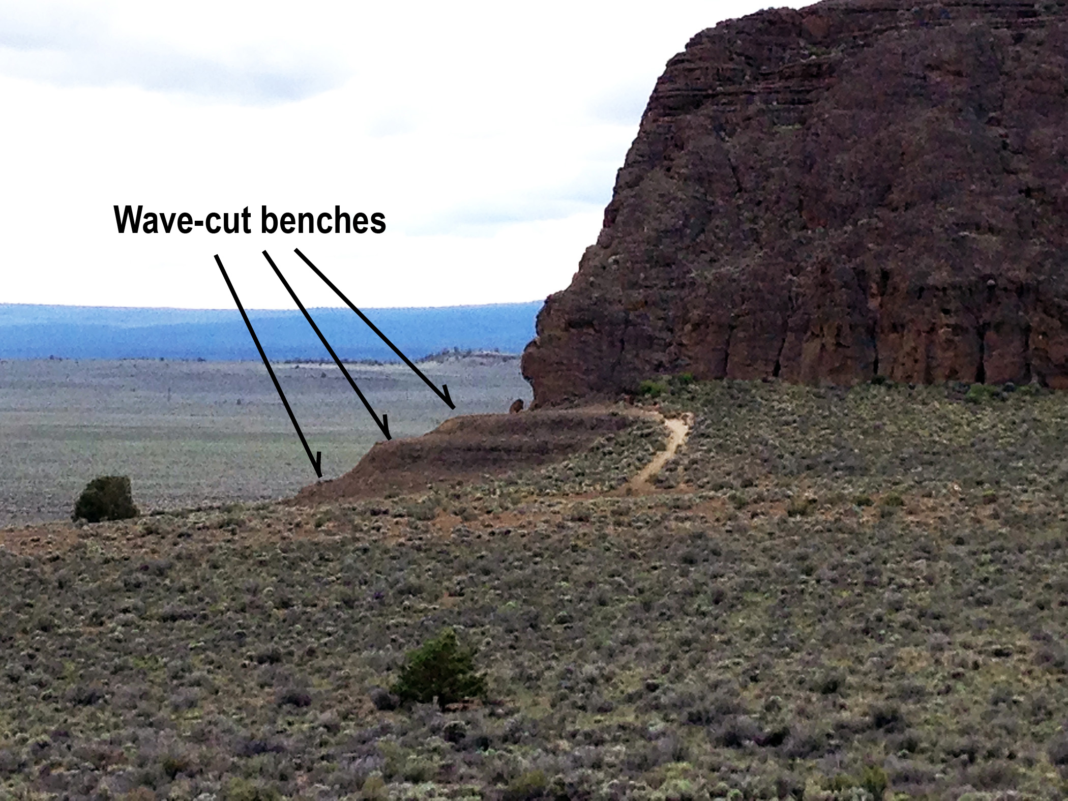 Wave-cut benches on southern prong of Fort Rock’s wall, May 24, 2016.