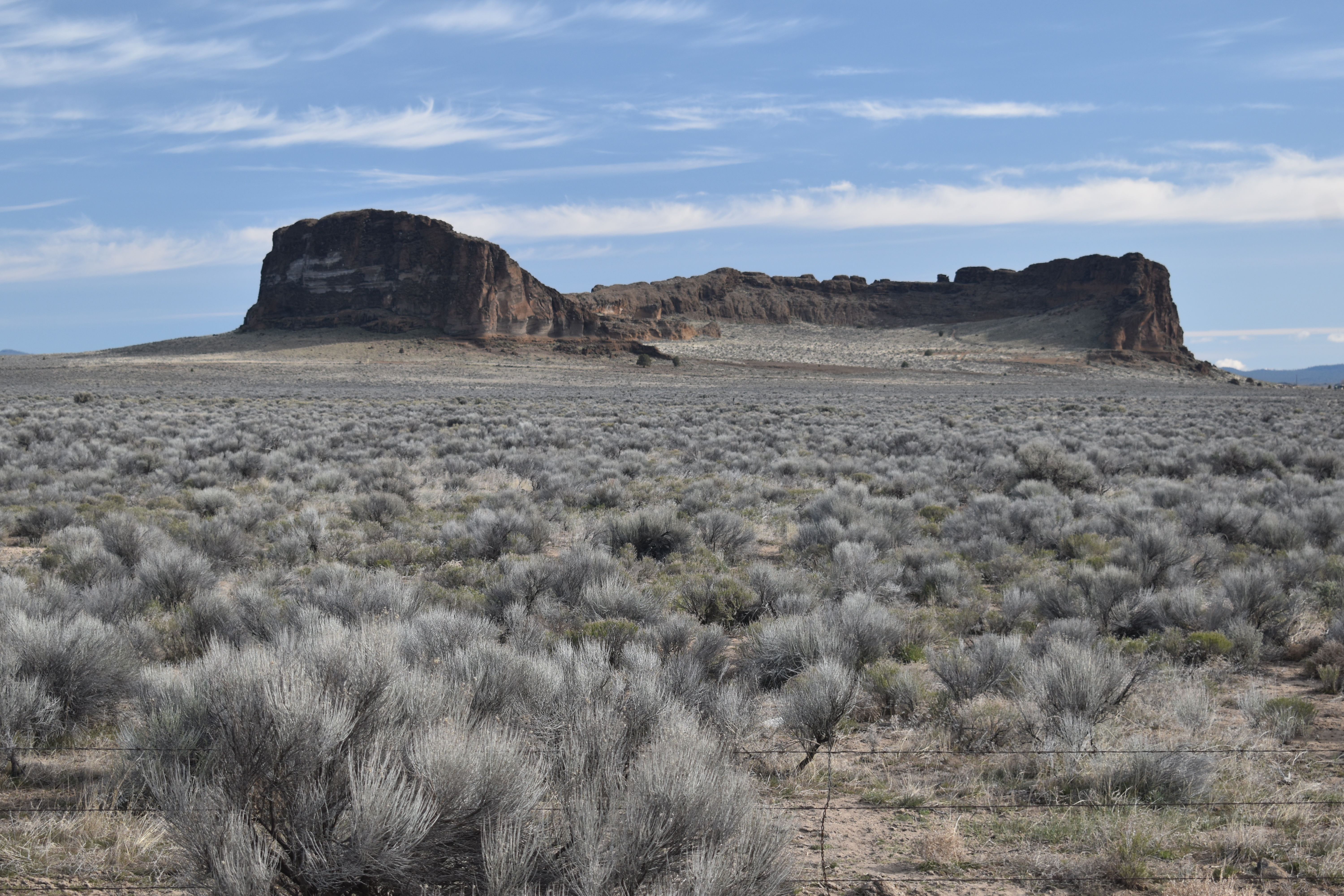 View north to Fort Rock from Lake County Road 5–10. May 1, 2024.