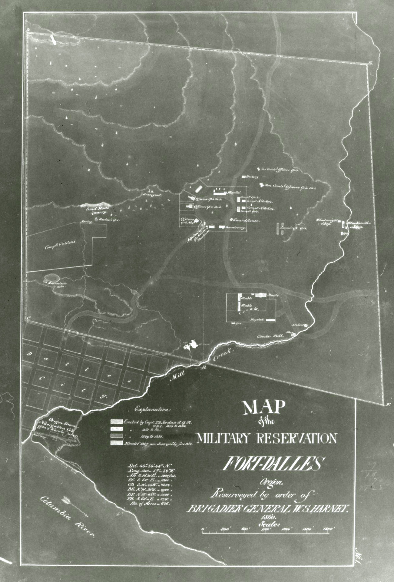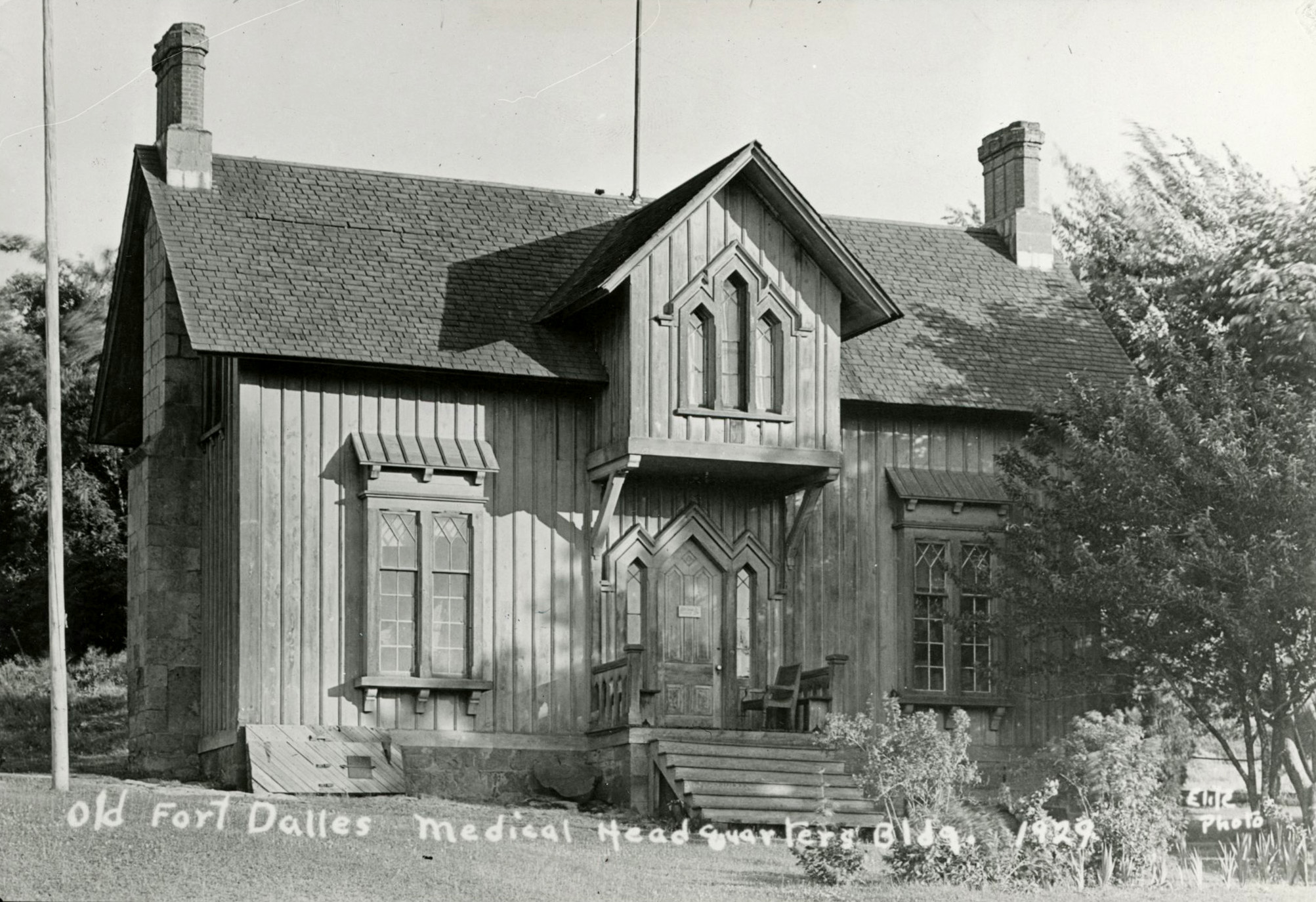 A ten-square-mile military reservation, established in 1850 and centered on Fort Dalles, was reduced in size by Congress in 1867 and 1871 to allow the City of The Dalles to grow; the remaining military reservation lands were transferred to the Interior Department in 1877. In 1903, a group of women in The Dalles initiated a campaign to preserve the surgeon’s quarters, and Congress deeded the building and adjacent lots of the military reservation to the Oregon Historical Society.
