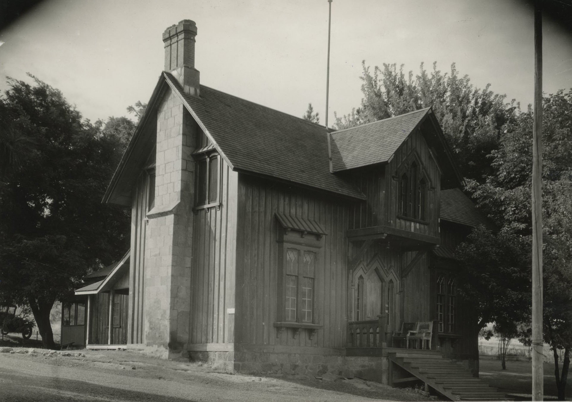 Captain Thomas Jordan, the assistant quartermaster, oversaw the expansion. Together with Louis Scholl, the supervising architect, he crafted a plan unique to U.S. Army posts, adapting architect Andrew Jackson Downing’s "Picturesque" Gothic cottage-style architecture to a uniform military scale. Downing-inspired elements included square-headed windows, entrance porches, bay windows, pointed gables, and board-and-batten building exteriors. Scholl designed and provided plans for practically every aspect of construction, including the interiors. For the Surgeon’s Quarters, he adapted Design III and the Symmetrical Bracketed Cottage plan from Downing’s The Architecture of Country Houses, adding details such as clustered chimney tops and an arched door frame.