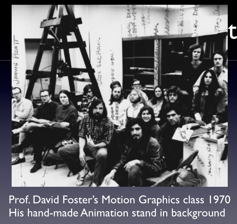 David Foster in room with students. Foster built the 16 mm camera animation stand in the background.