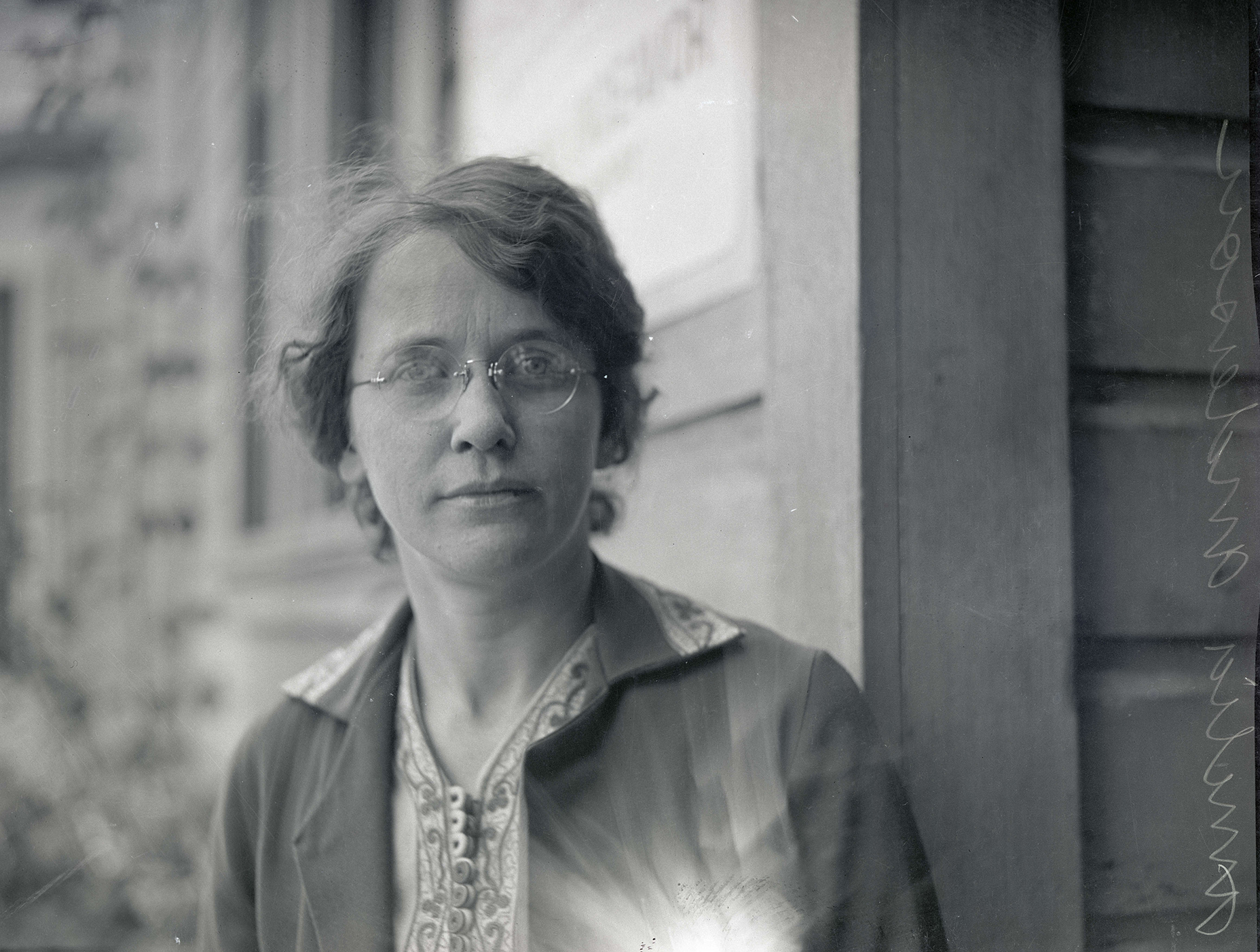 Amelia Anderson outside Marshall Street Community Center, now Friendly House, Portland, 1923.