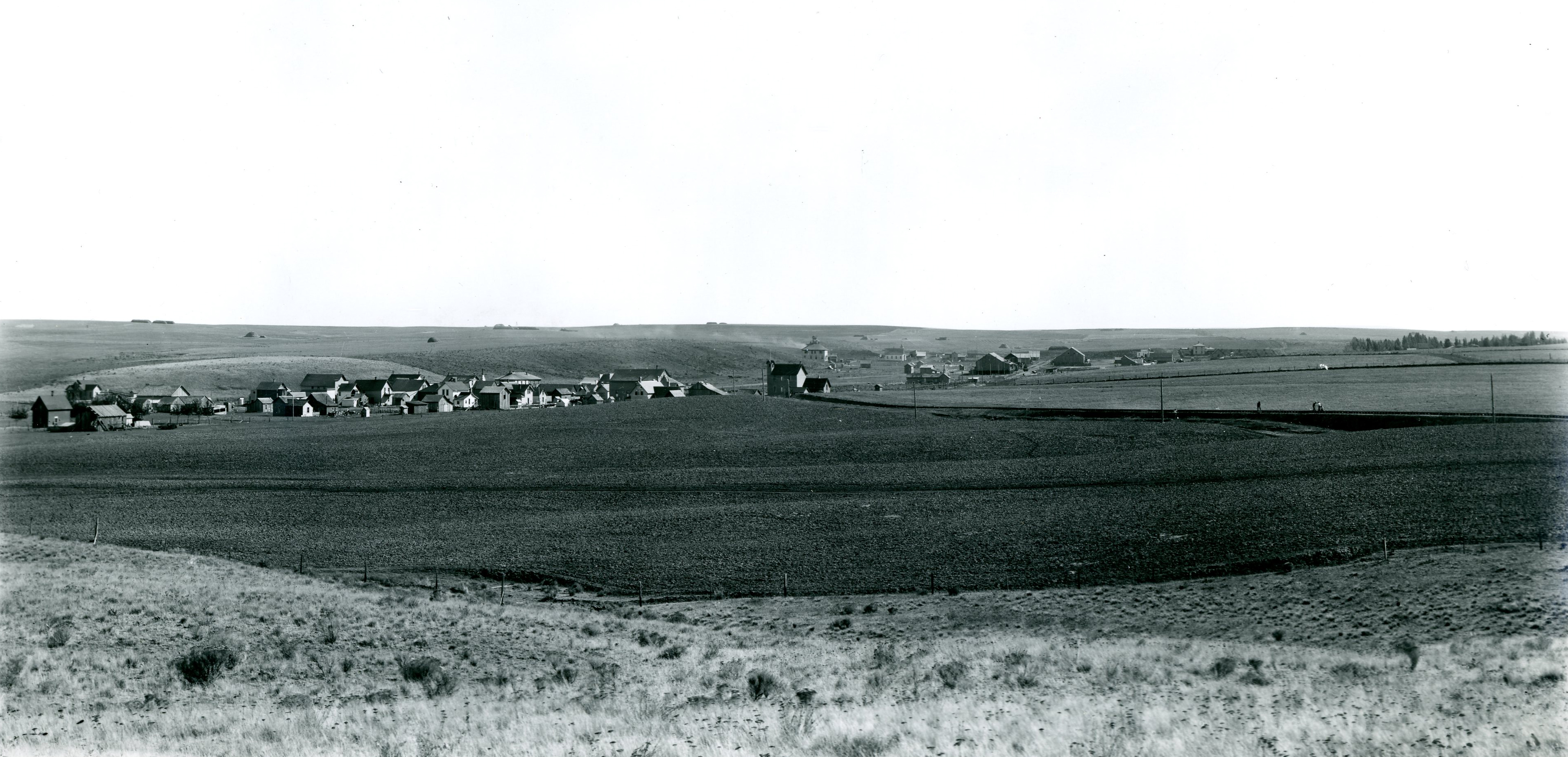 The population of Grass Valley grew from 25 in 1888 to 342 in 1910, largely because of the arrival in town of the Columbia Southern Railroad in 1898. Farmers and ranchers transported wheat and cattle to the main railroad on the Columbia River. The construction of the Oregon Trunk Railroad on the Deschutes River in 1909 vitalized the town’s economy, as Grass Valley became a staging ground for building equipment and supplies and a home to railroad managers, engineers, and migrant workers. Temporary work camps housed immigrant workers from Italy, Sweden, and Balkan countries, and a temporary hospital was established to minister to injuries sustained while working on the railroad. The railroad was completed in 1911.