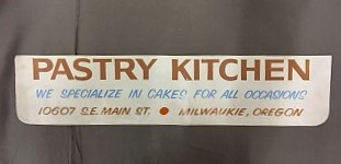 Milwaukie Pastry Kitchen business sign, c1970s.