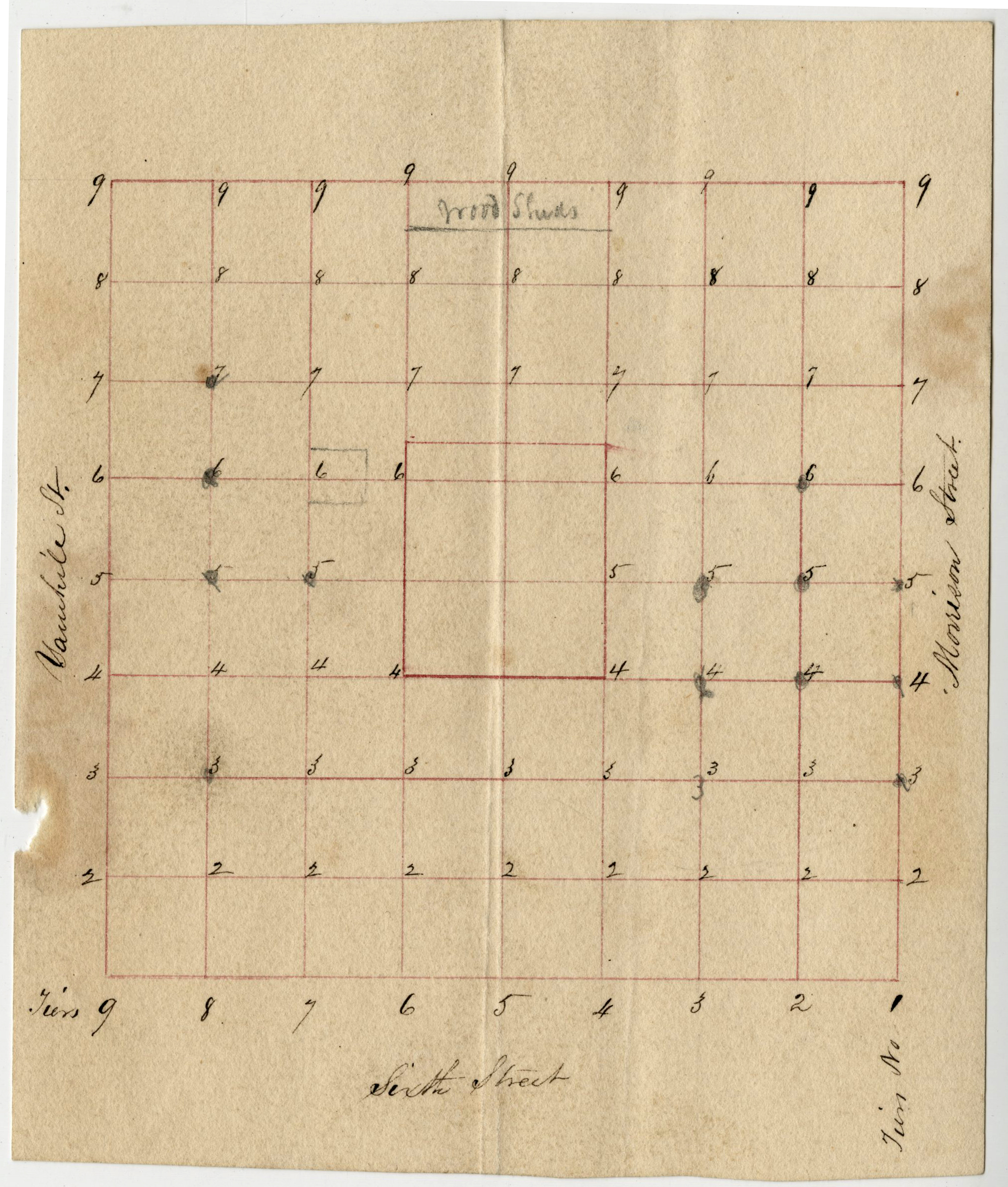 Early grid map of downtown Portland from Hallock's papers.