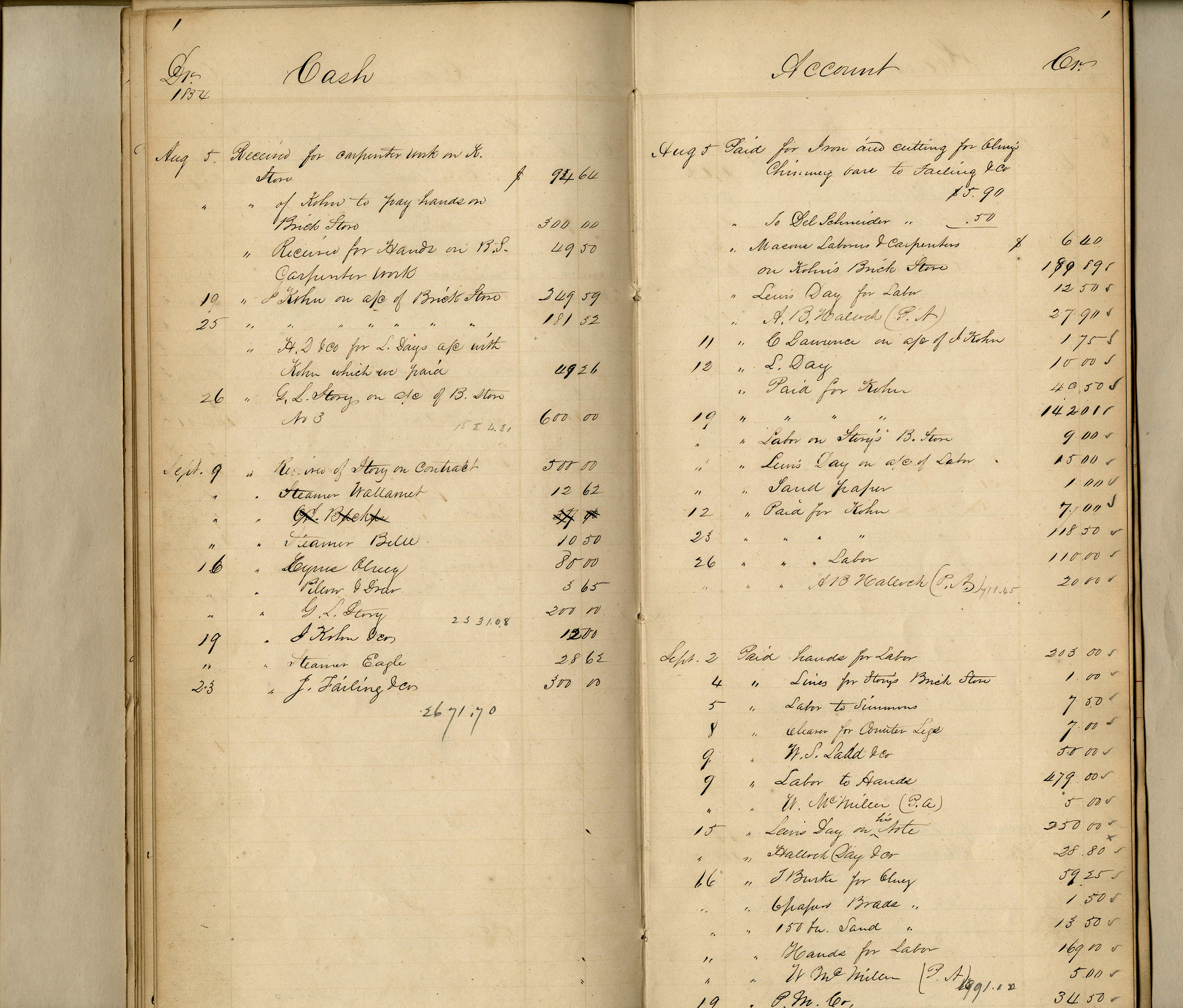Page from A.B. Hallock's account book, 1854.