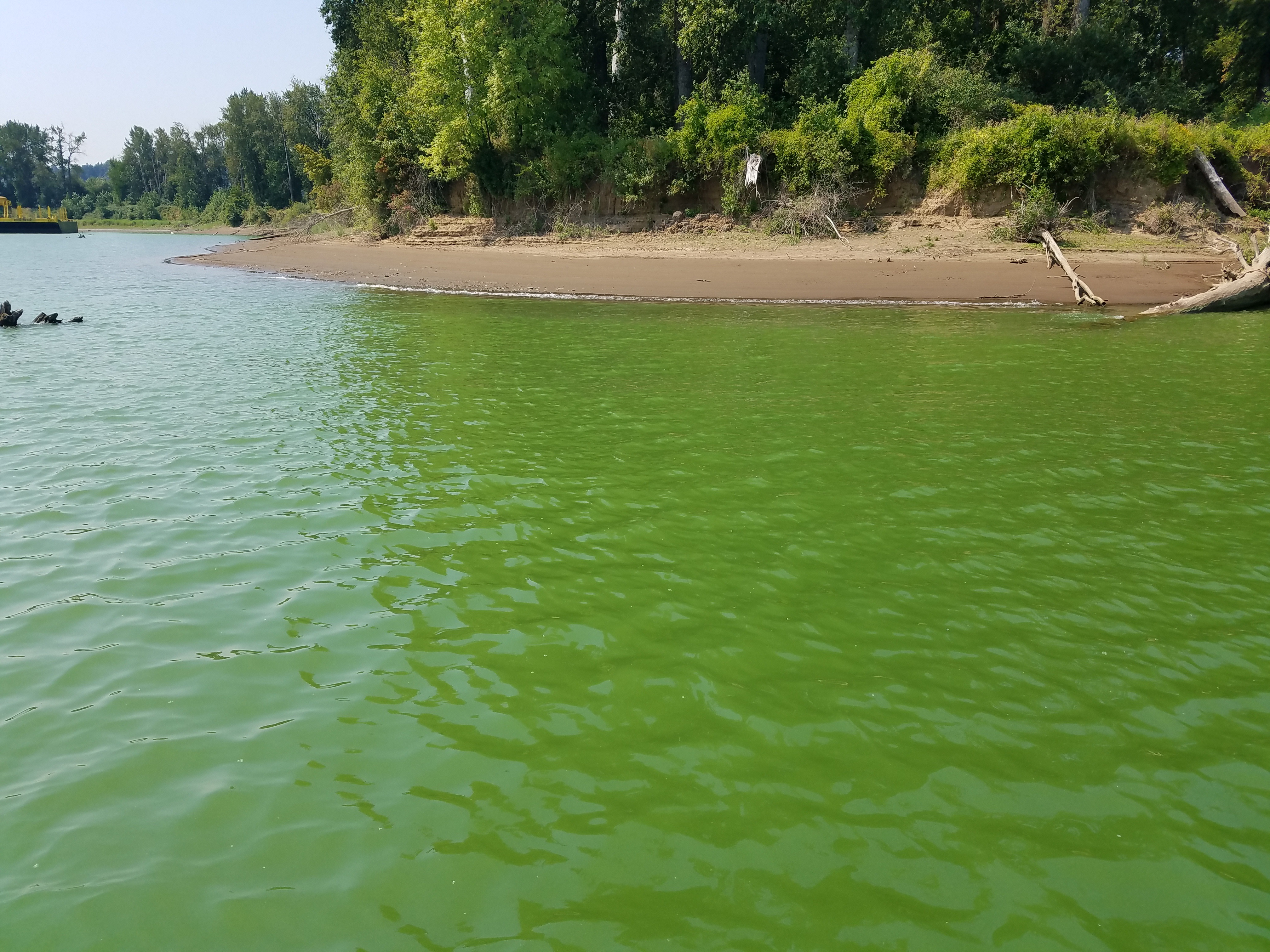 Algae Bloom at the Ross Island Lagoon in the Willamette River, 2018.