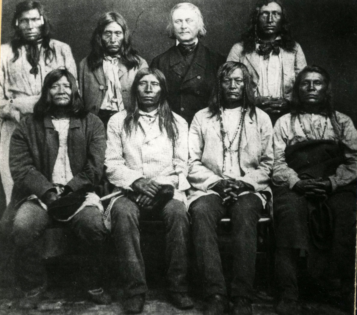 Father de Smet with tribal leaders he persuaded to surrender to Harney, c.1858.
