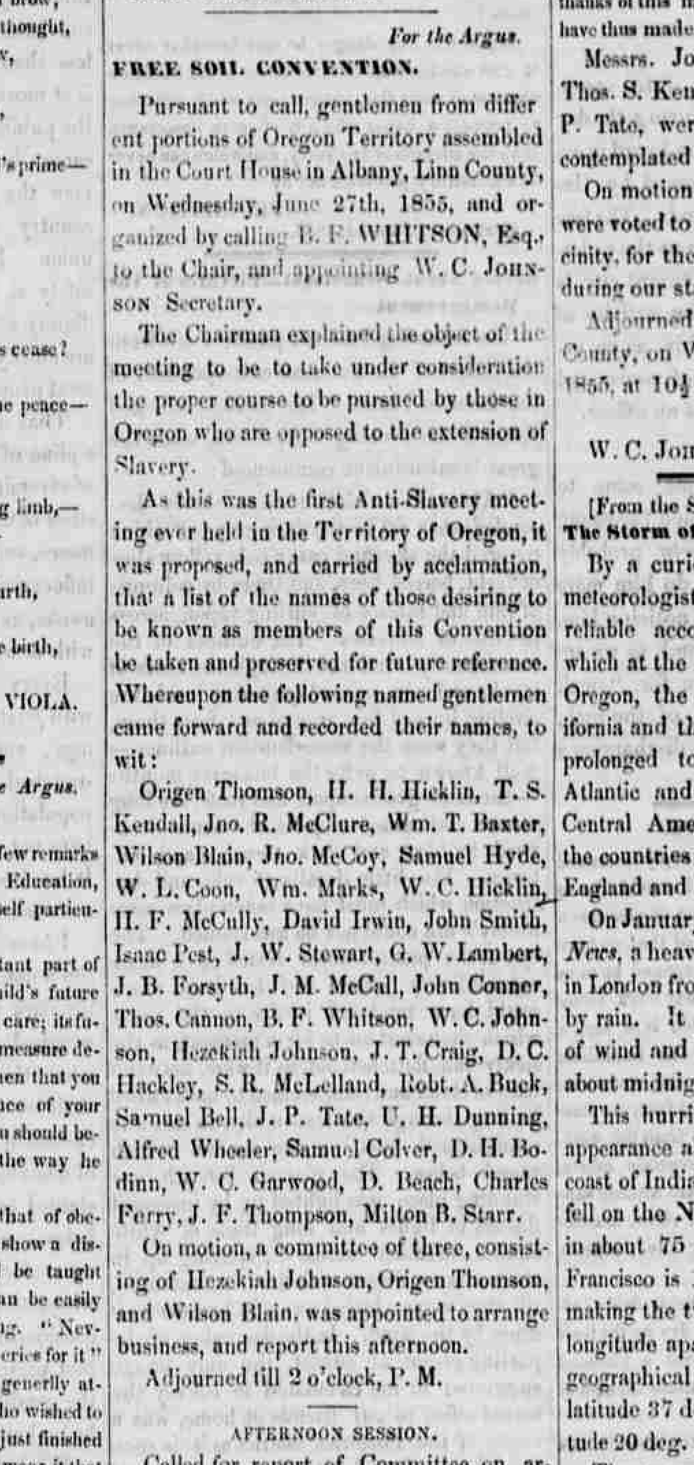 "Free Soil Convention," Oregon Argus, July 7, 1855.