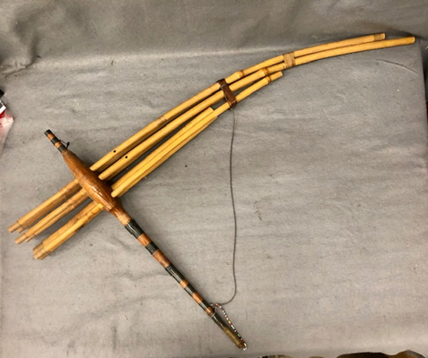 Hmong qeej. A musical reed pipe instrument made from bamboo, 1999.