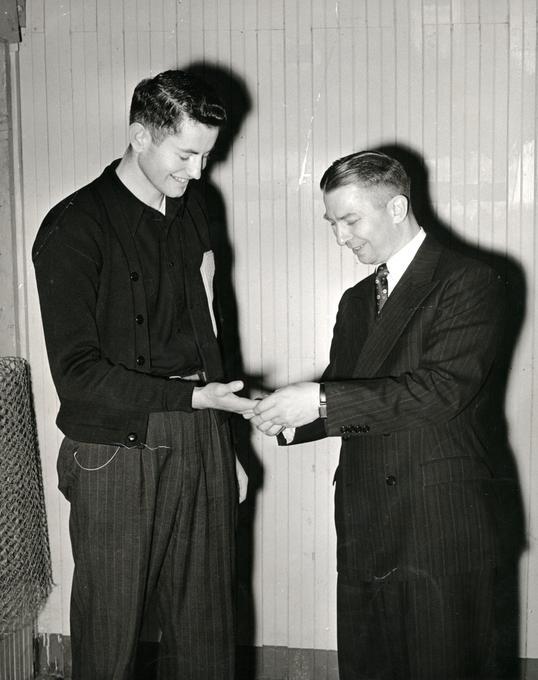 Howard Andrew “Hobby” Hobson was a basketball pioneer and innovator who led the University of Oregon's Tall Firs to the 1939 NCAA Championship. Creative and analytical, he found success as a coach at high schools, small colleges, and universities and served on the NCAA Rules Committee and the U.S. Olympic Basketball Committee. His legacy as a basketball strategist and innovator was cemented in 1965 when he was enshrined in the Naismith Memorial Basketball Hall of Fame. He was inducted into the Oregon Sports Hall of Fame in 1980.