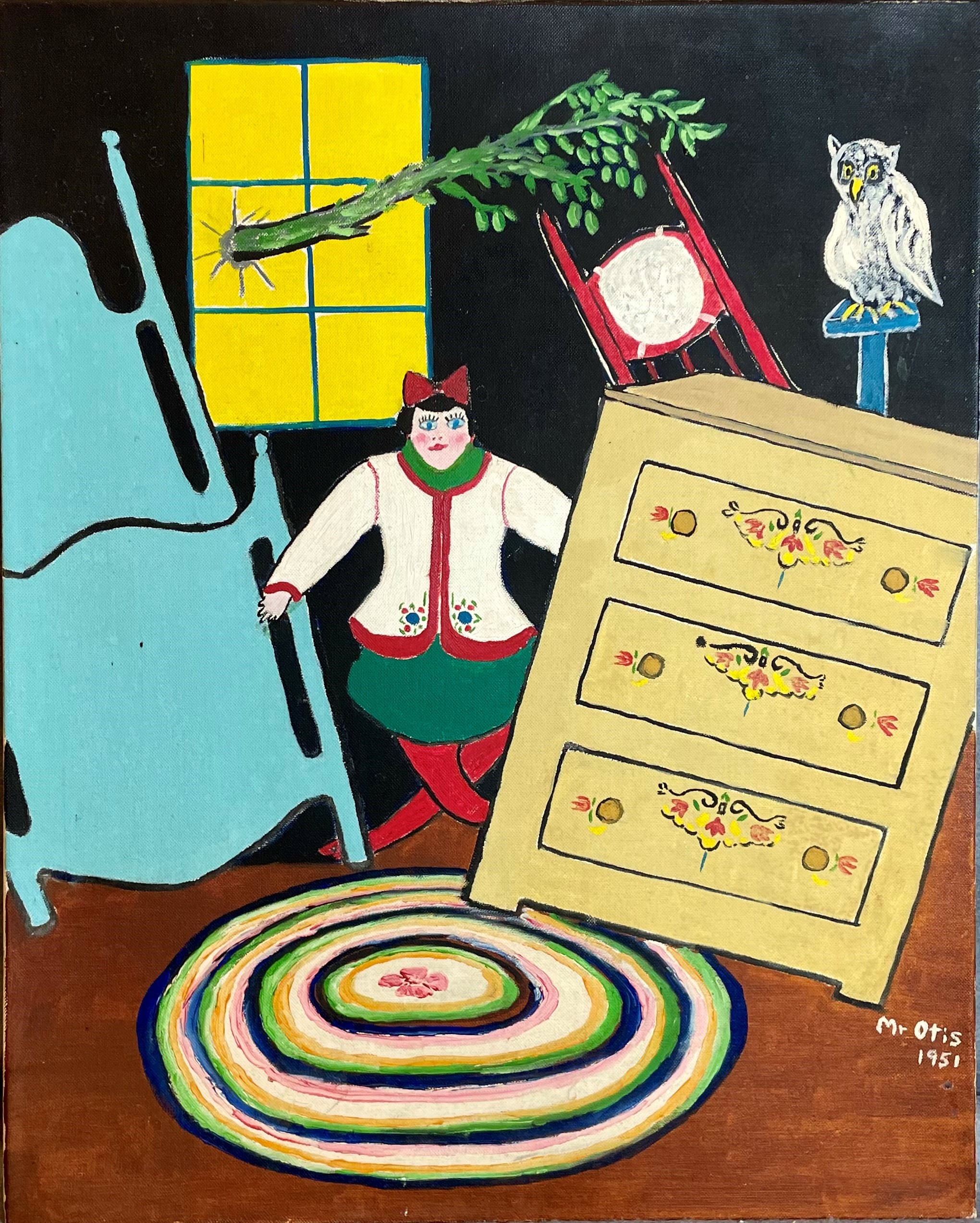 The energetic Holbrook turned to painting in the 1950s. Encouraged by his wife Sybil and working under the pseudonym of “Mr. Otis,” Holbrook began producing what some called “civilized primitive” artworks. Like most of his writings, he considered his painting to be “lowbrow” art.