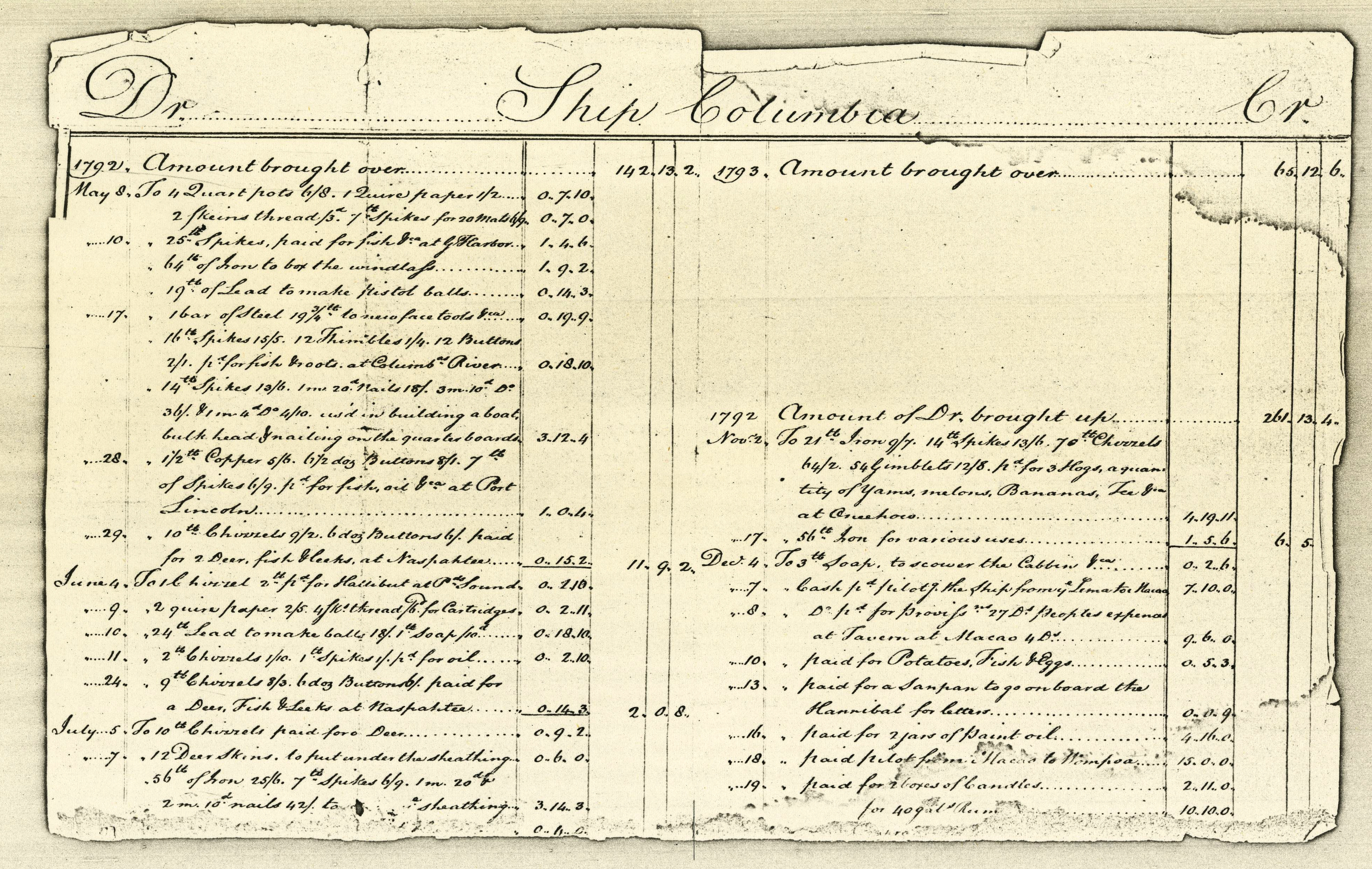 Barrell financed the initial voyage of the Columbia Rediviva, which traded in the Pacific Northwest during the first circumnavigation by an American ship from 1787 to 1790. Although Hoskins was not on that voyage, presumably he received an education in maritime commercial accounting and perhaps map-making during those years. He certainly earned the confidence of his employer. Prior to the Columbia’s second voyage in search of profit from the maritime fur trade, Barrell instructed Hoskins to “give us a faithful account of all transactions.”