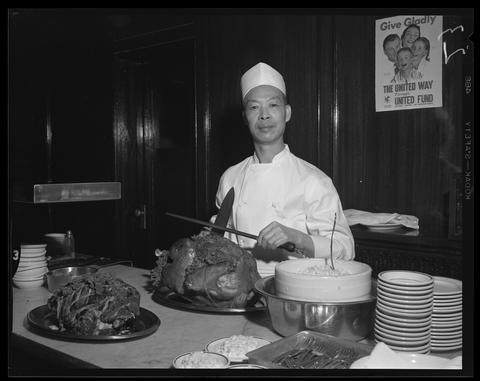 Harry Fong at Huber's Restaurant, November 24, 1953.