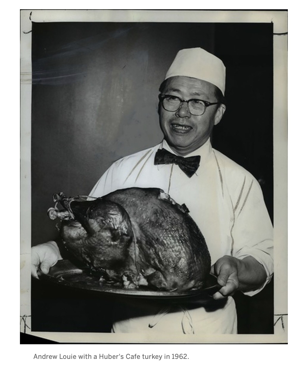 Jim Louie left ownership of Huber’s to his nephew Andrew Louie, who had worked there since he was in high school. By 1952, Andrew bought out John Huber, and the restaurant has remained entirely in the Louie family ever since. Andrew Louie was manager for many years, aided by his children Dave, Lucille, and James Kai, who had started working at Huber’s when he was fourteen years old. After Andrew died, he willed his ownership to his three children, and James became manager, a position he filled for decades until he died in 2025.