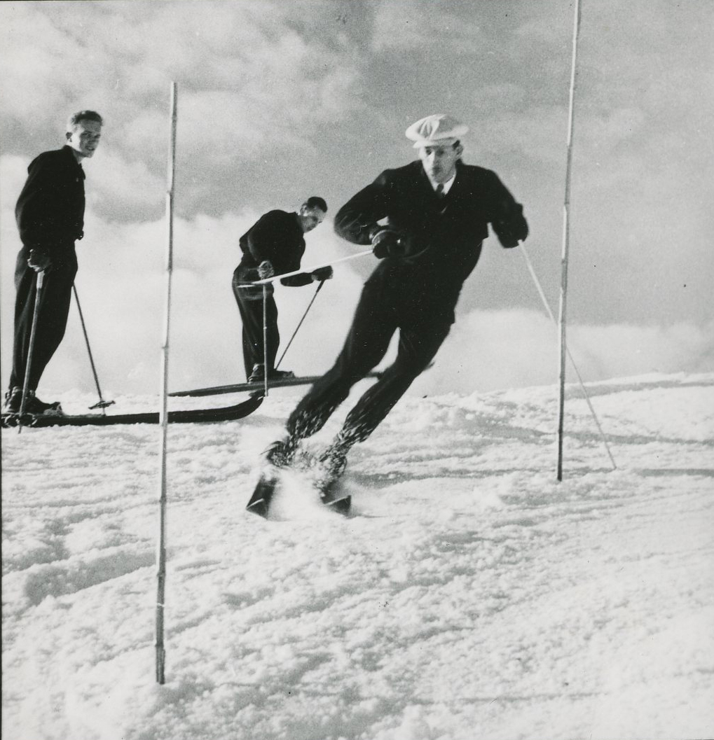 During the 1930s, no one in the region could match Hvam’s racing success. He also recorded what may have been the first ski descent of Mount Hood from the summit in 1931. In 1932, he won the cross-country, jumping, and Nordic combined national skiing title at Lake Tahoe. By 1934, Hvam had taken up downhill skiing and had perfected his slalom racing technique, winning his first major race at the Oregon Slalom Championships. Two years later, he won the Silver Skis downhill race on Mount Rainier, one of twelve races he won in 1936-1937, including stunning first-place finishes at the Mount Baker meet in slalom, giant slalom, cross country, and jumping events.