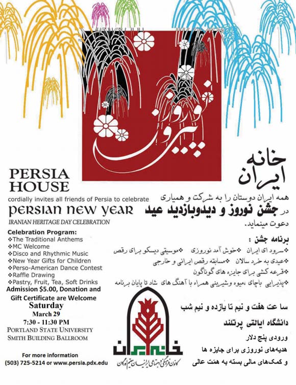 Iranian Americans in Oregon celebrate important national holidays, especially Nowruz, which means “new day” in Persian. Nowruz takes place on the vernal equinox, usually March 21, and marks the first day of the Persian solar calendar. The Nowruz celebration, whose origins can be traced to Zoroastrian times before the Islamic conquest in the eighth century, lasts for two weeks and includes a fire festival and four other celebrations. In the last few years, over a thousand people attended Nowruz celebrations at Oaks Park in Portland. Nowruz celebrations have also taken place at Oregon State University and Lewis and Clark College.