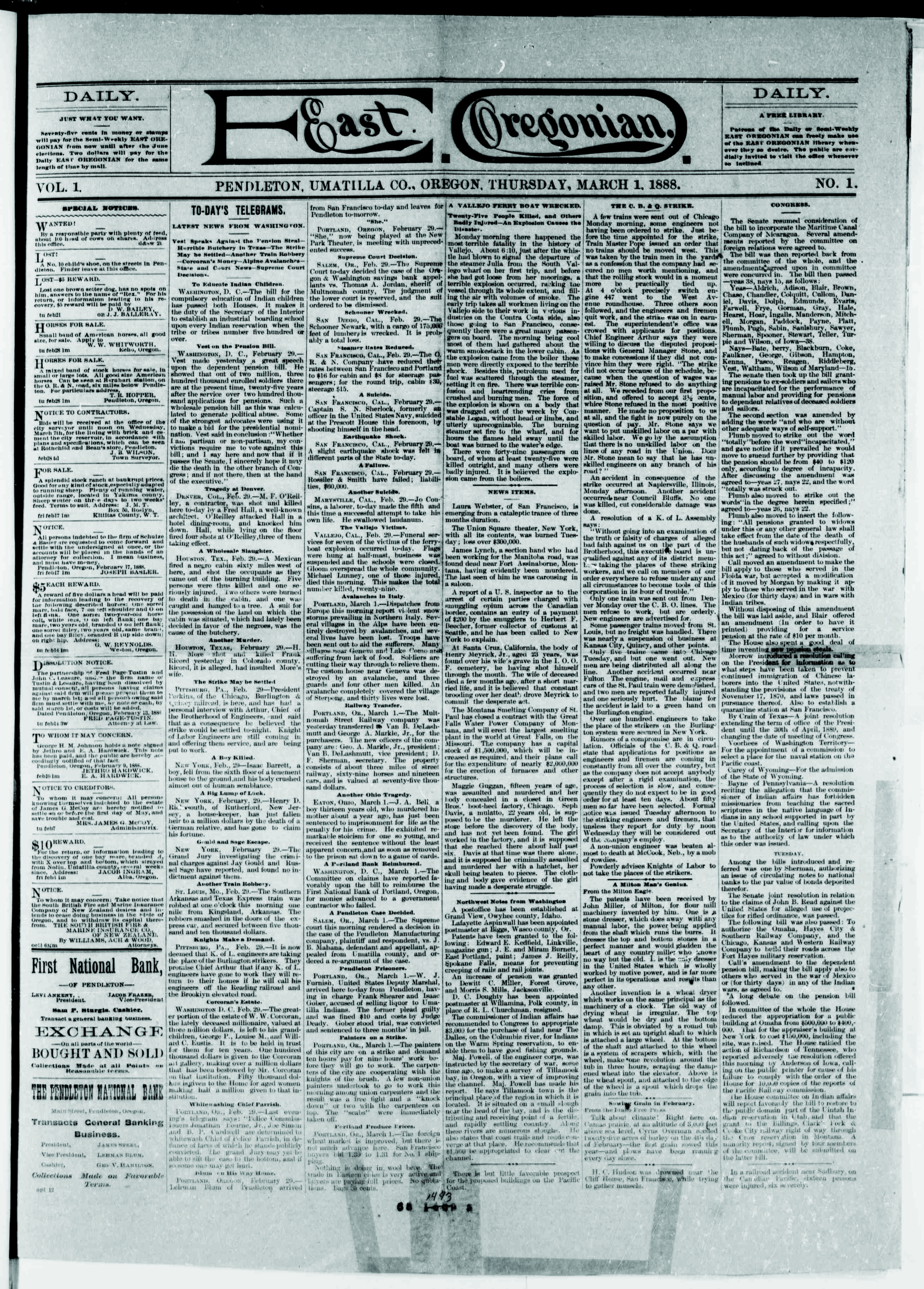 Charles S. “Sam” Jackson, born in Virginia on September 15, 1860, came to Oregon in 1880 and settled in Pendleton. Barely twenty and without any formal training, Jackson sought an opportunity to pursue his interest in printing and publishing. After working as a printer for the East Oregonian, he bought the weekly newspaper in 1882 and became its publisher. By 1888, the paper had become a powerful voice in the region, and Jackson was publishing the paper six days a week.