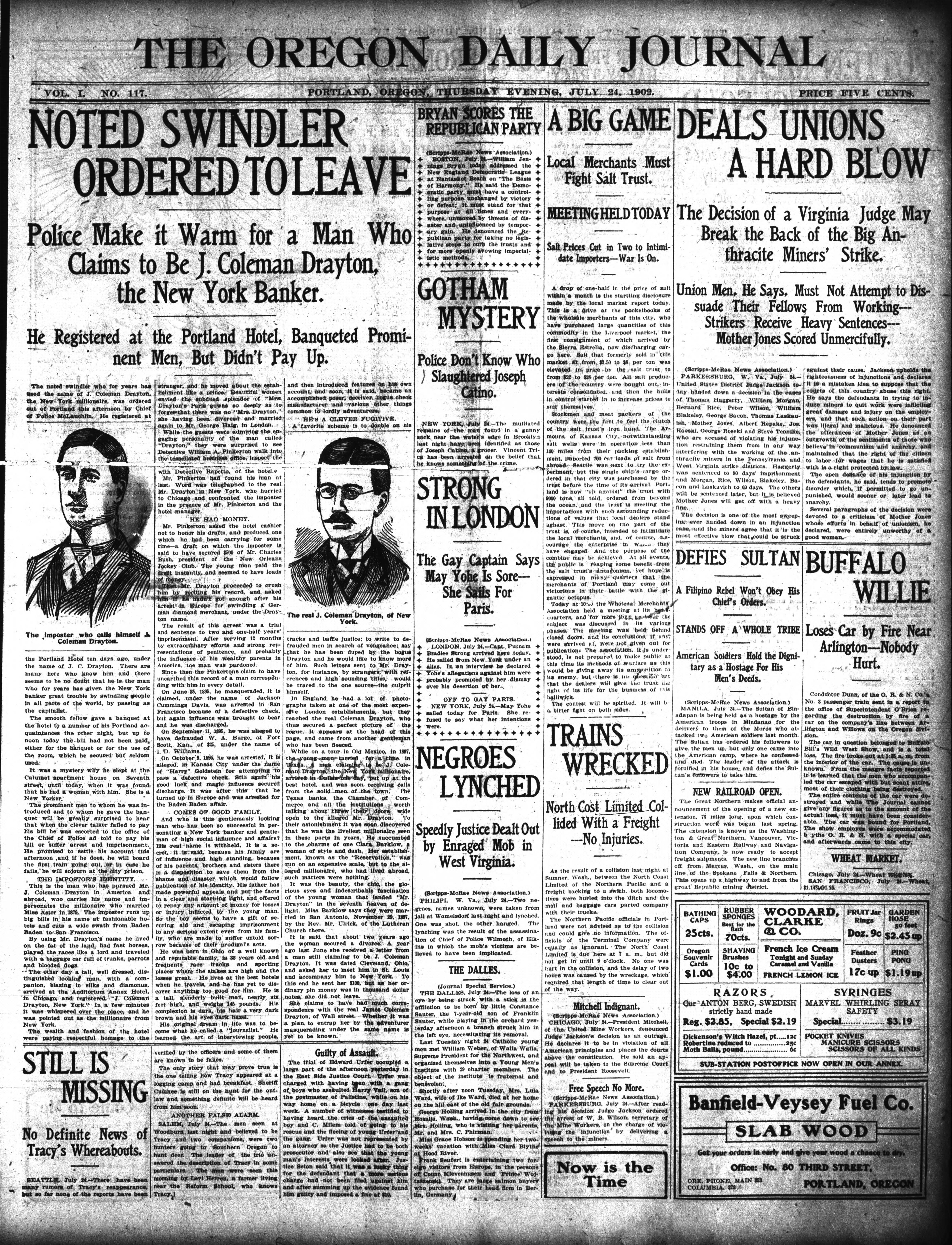 In 1902, Jackson’s success in eastern Oregon attracted the attention of supporters of a new afternoon paper in Portland, the Evening Journal, which had been started in March of that year but was failing by July. Jackson moved to Portland, bought the paper with the help of other investors, and changed its name to the Oregon Journal. The Journal quickly became a credible competitor to the Oregonian, which was originally founded as a Whig newspaper in 1850 but went Republican by the 1860 presidential election.