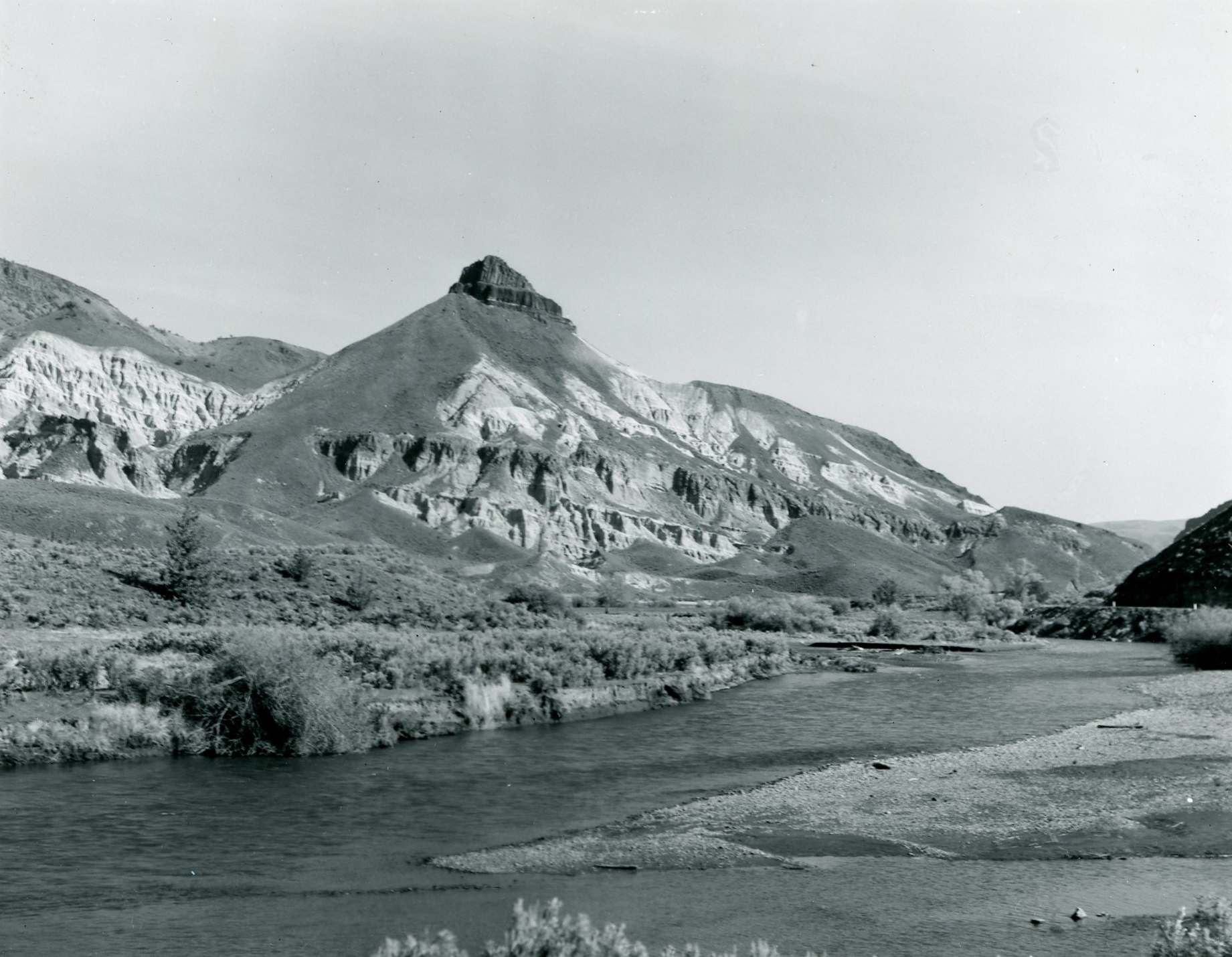 John Day Fossil Beds, basalt bluffs, 1937 Courtesy Oreg. Hist. Soc. Research Lib., OrHi830535
