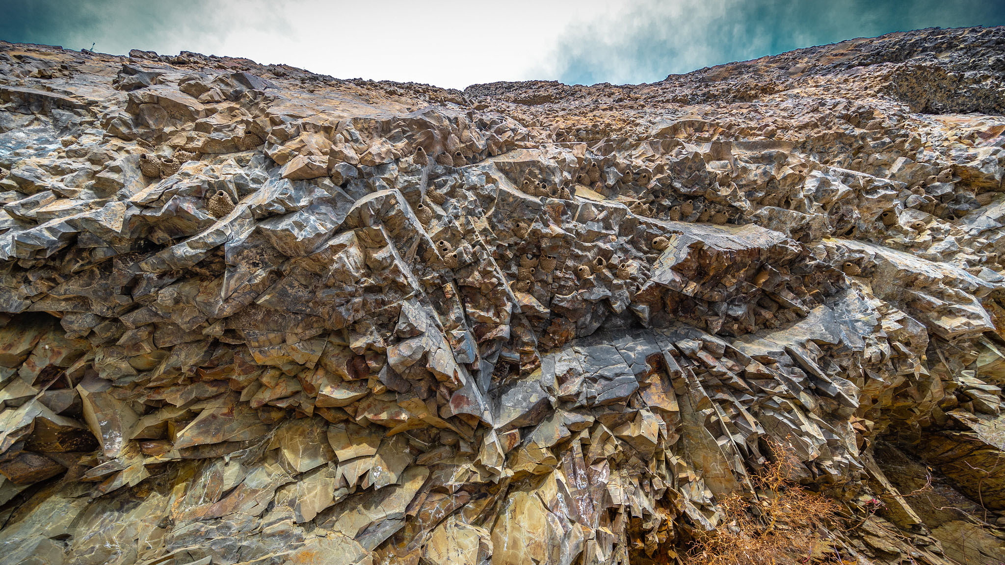 Cliff swallow nests along the basalt canyon walls along the John Day River, 2018.
