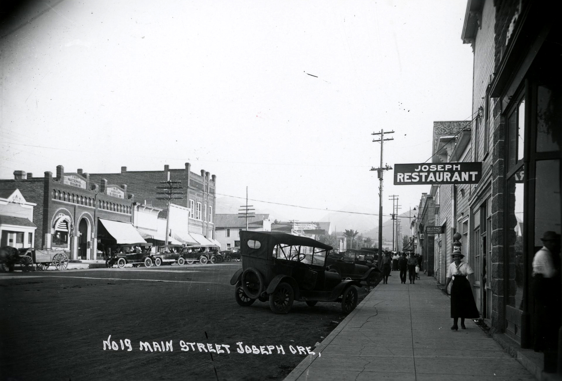 Joseph was initially connected to the outside world by stage lines to Elgin and Lewiston, Idaho. In 1908, the Oregon-Washington Railroad and Navigation Company built a branch line to Joseph from the Union Pacific Railroad in La Grande. The town's timber industry launched in earnest after the establishment of the railroad line, and timber became the primary economic product of the region. The first major mill was the Joseph Planing Mill, on the banks of the Wallowa River, which was owned and operated by A.M. Hall & Son.