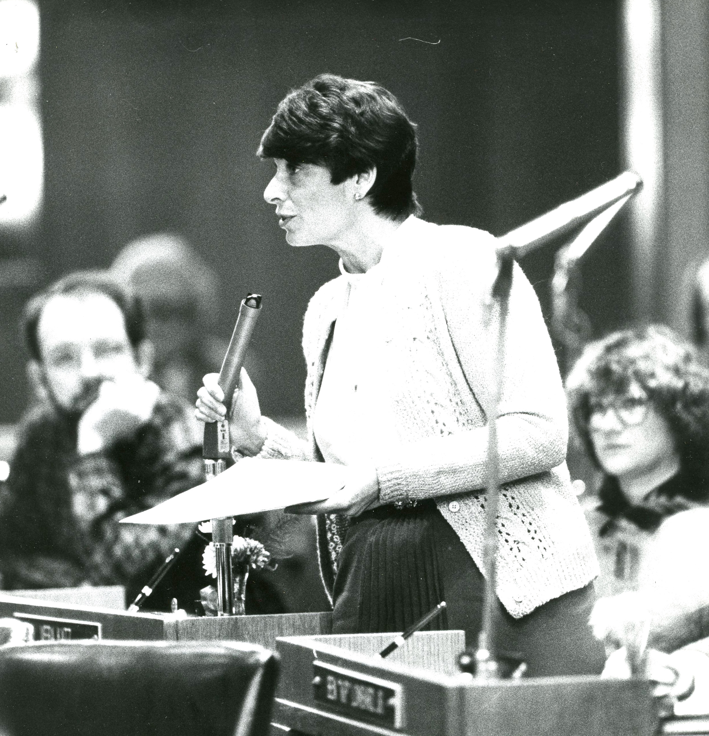 In November 1984, legislators elected Katz Speaker of the House after an all-night session of balloting, during which no one was allowed to leave the voting room. Her allies did not want male legislators retreating to the bathroom, fearing they would cut deals that excluded the women. When Katz took the gavel at the start of the 1985 legislative session, she was the first woman Speaker in Oregon history and only the second female Speaker in the United States (the first was in North Dakota). "The last thing those boys wanted,” she told the Oregon State Capitol Foundation Oral History Project, “was to have a woman speaker, a speaker like me."
