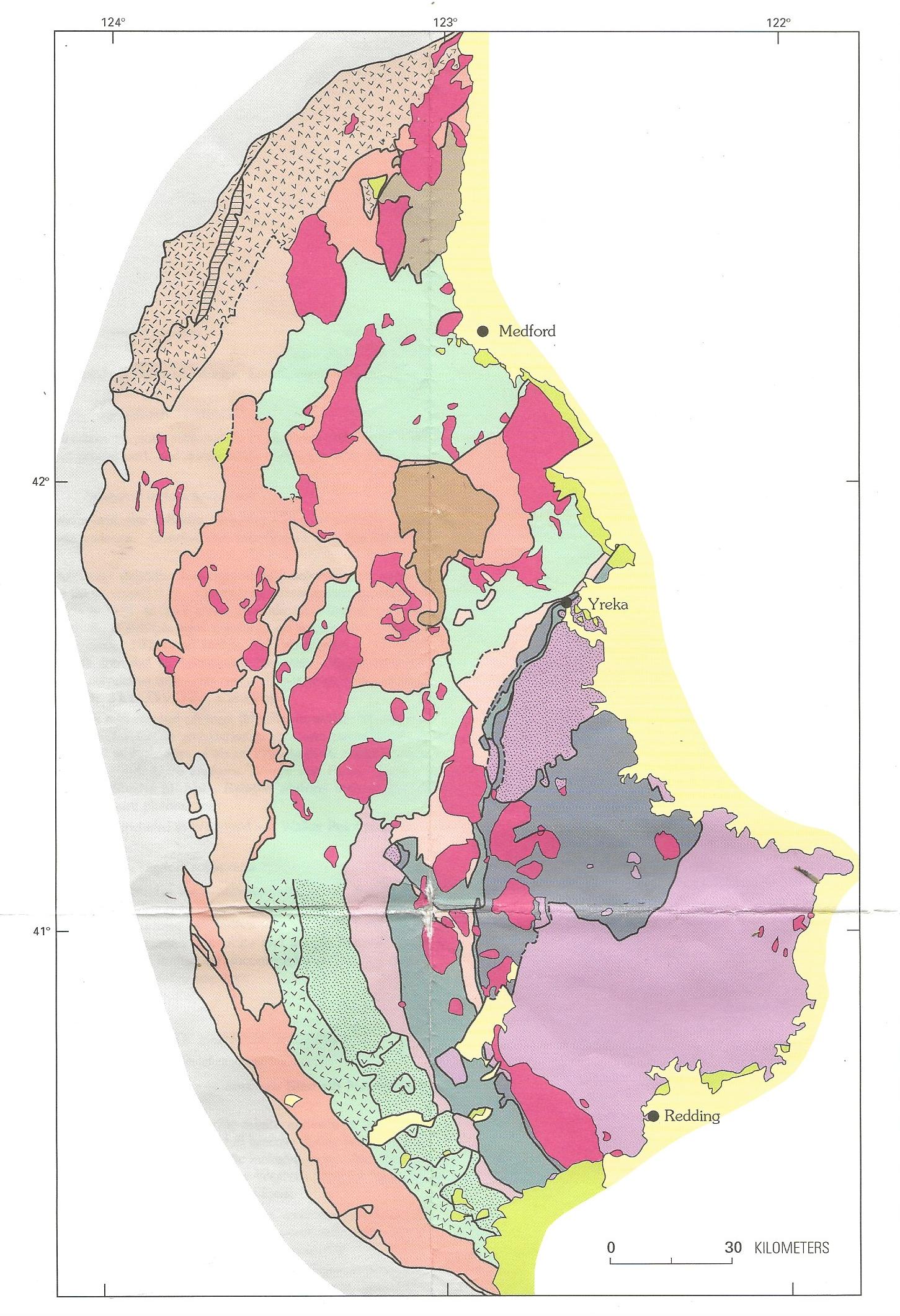 Irwin, William P. Geologic Map of the Klamath Mountains, California and Oregon: U.S. Geologic Survey Miscellaneous Investigation Series Map I-2148, 1994.
