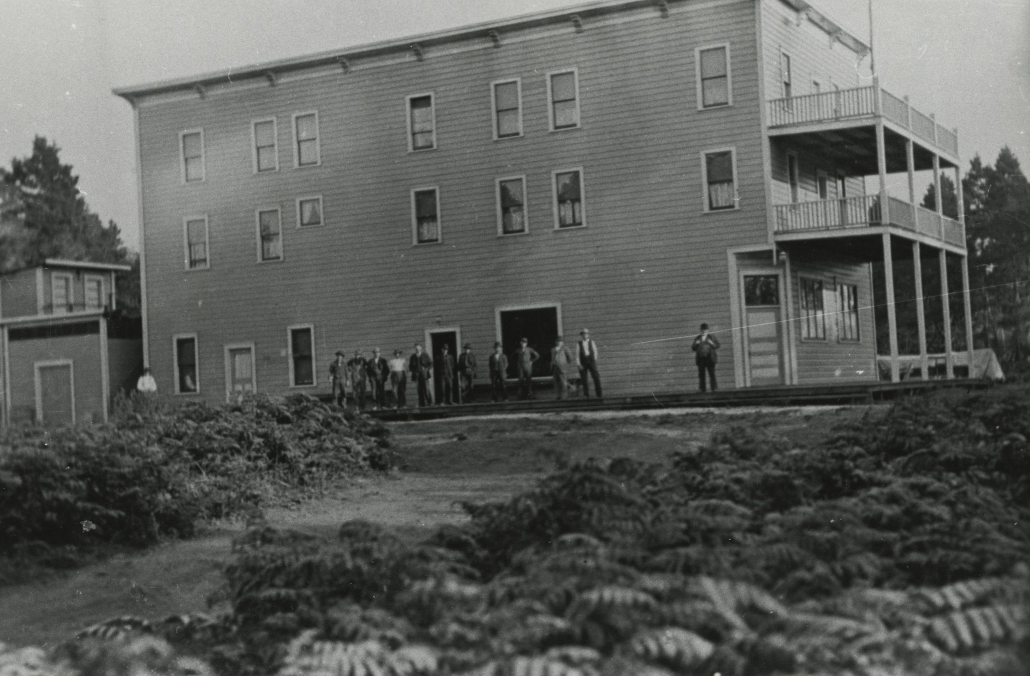 The town began to take shape as land surveys were used to lay out streets and residential lots, and the population grew to 300. One of the earliest businesses was a sawmill, which provided lumber for the new town from the quickly-logged virgin forests covering the area. Messrs. Anderson and Severson built a three-story hotel in 1908, which they advertised as the finest such establishment between San Francisco and Portland. It was the most popular establishment in town for the many young, unattached laborers in Lakeport, as the hotel served three family-style meals a day in its large dining room.