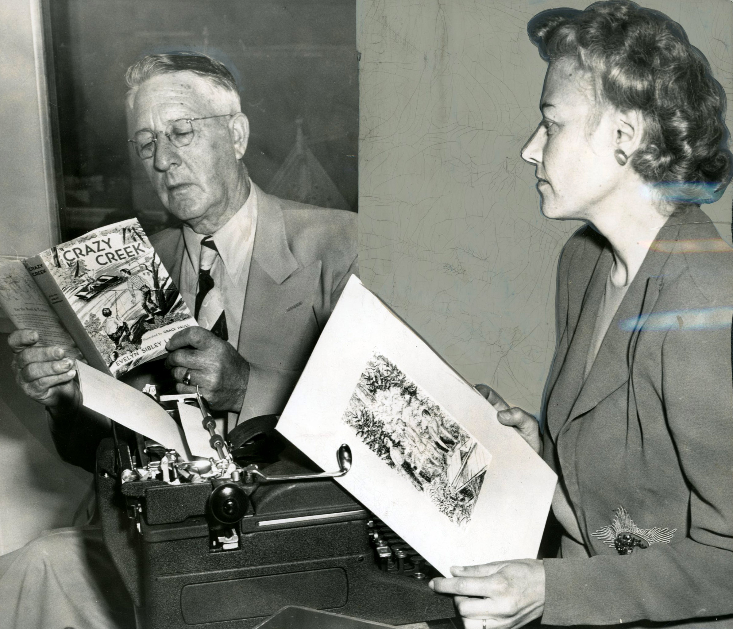 Evelyn Sibley Lampman with Multnomah County Supt. of Schools, R.E. Canon, 1948.