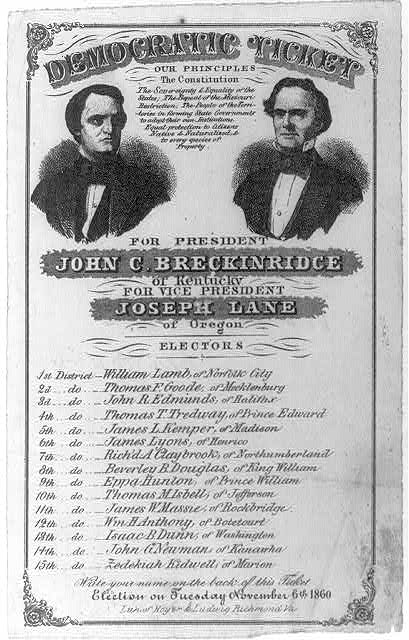 Democratic ticket for Breckinridge and Lane, 1860.