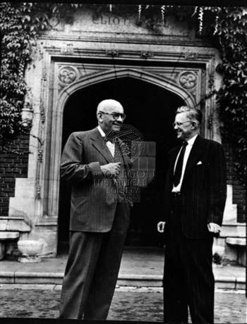 E.B. MacNaughton, right, as new president of Reed College, with former president Peter Odegard, 1948.
