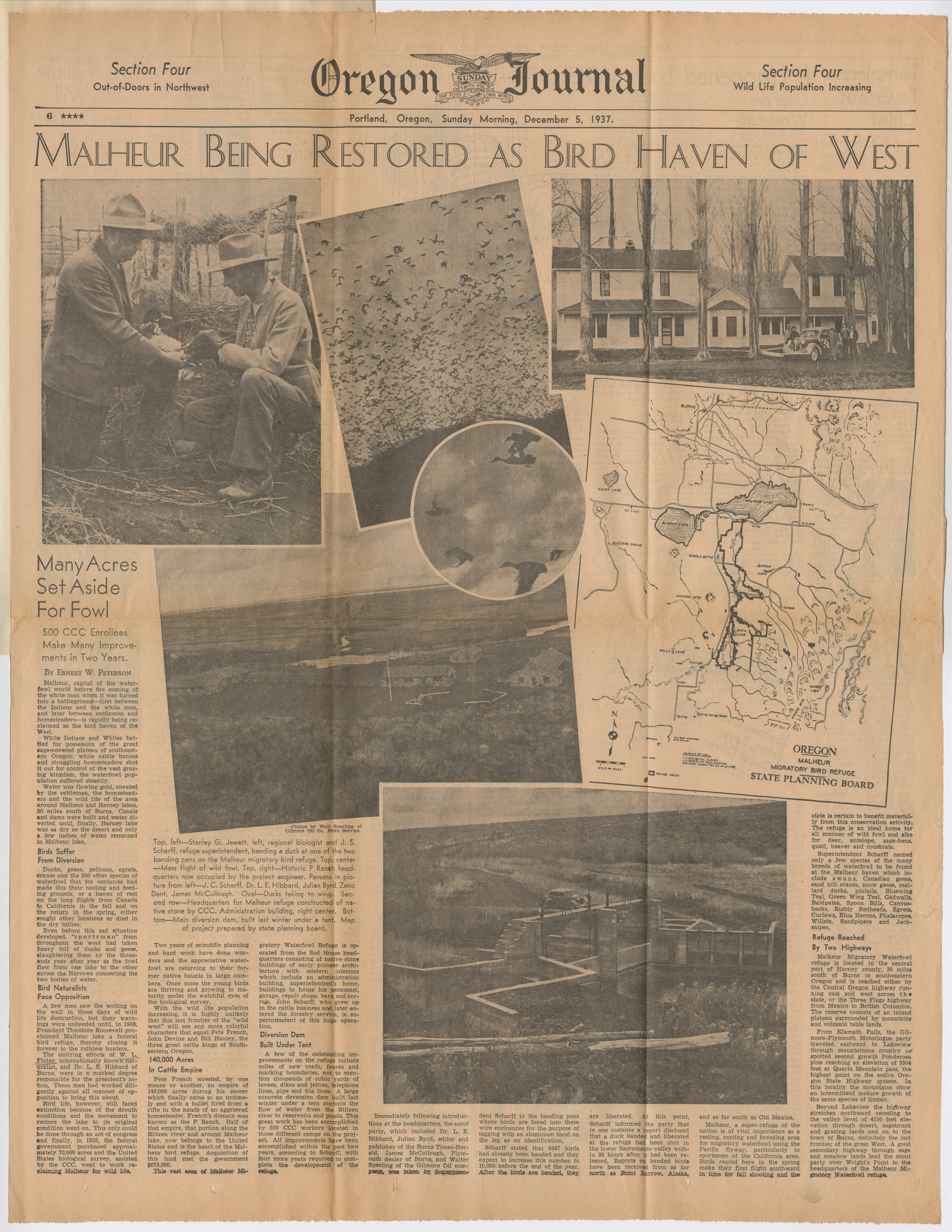 Oregon Journal, 1937, on Malheur Migratory Bird Refuge.