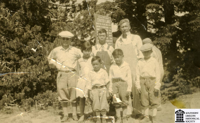 Maruyama (left), his children, and friends at Crater Lake, 1929.