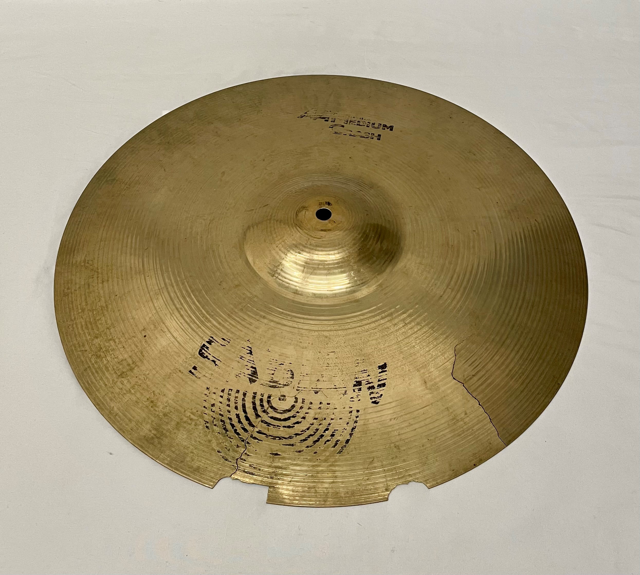 Cymbal belonging to Tyler T. Chen, drummer for The Slants, 2008-2016 (top).