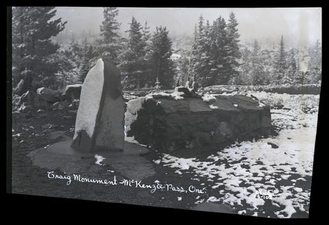 From the 1920s through the 1950s, the highway above McKenzie Bridge became known for its scenic beauty, especially in the fall when vine and big leaf maples transformed the fir forest into a blaze of color. Farther up the old highway, the road passes Scott Lake and Frog Camp, access points for the Three Sisters Wilderness area and adjacent lava fields. At the summit of the old pass, at the Dee Wright Observatory, are a popular peak finder and interpretive lava trail. The observatory, named after Forest Service packer Dee Wright, was hand-built from native lava rock in 1934-1935 by the Civilian Conservation Corps company at Camp Belknap. Craig Monument, located along the highway just west of the summit, was named after pioneer mail carrier John T. Craig, who perished at a cabin at that spot while carrying mail in December 1877.