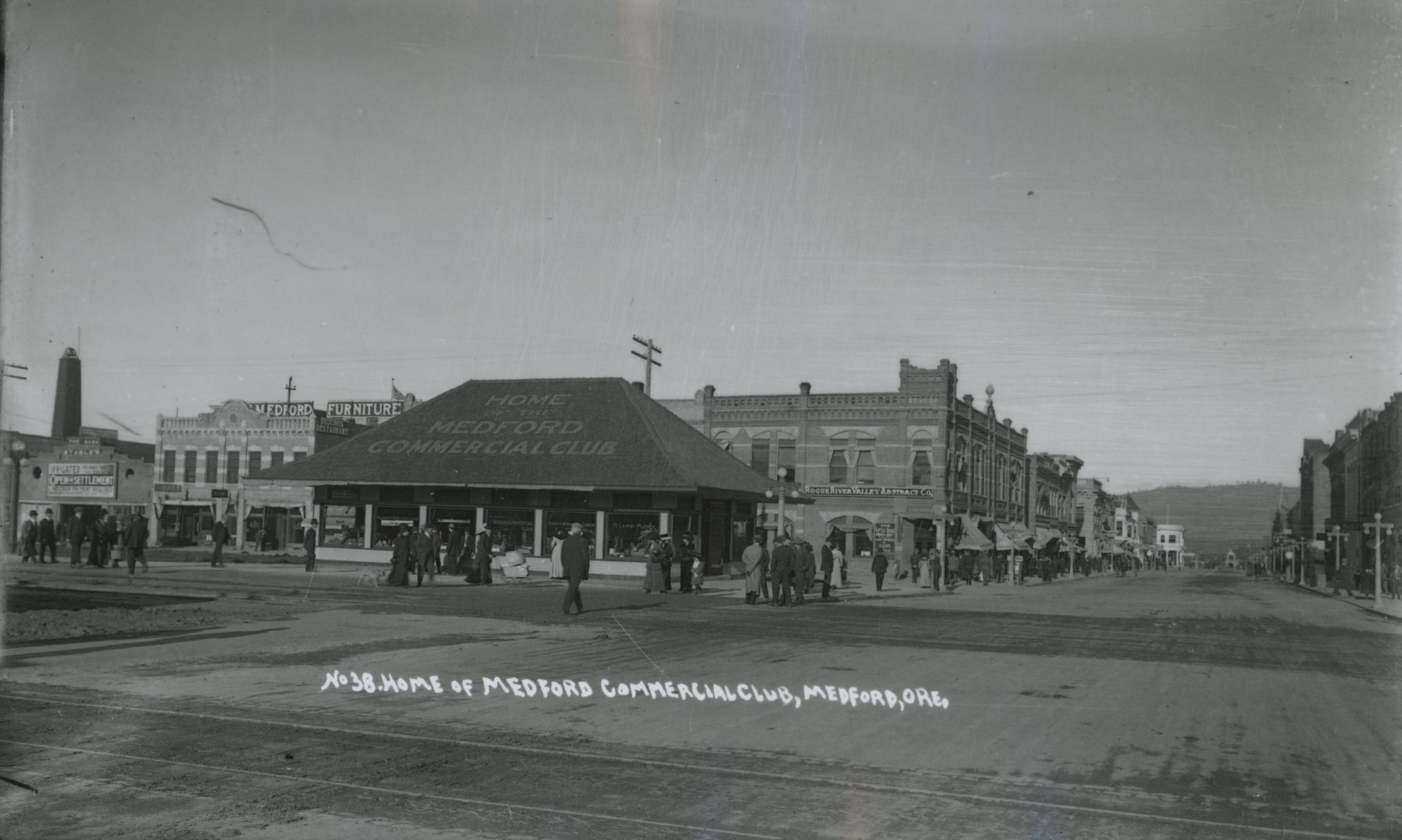 The railroad allowed southern Oregon products to reach larger markets, and Medford became a major shipping hub, primarily for pears, apples, and peaches grown in the valley. Southern Pacific, the Commercial Club, and local realtors promoted Medford’s climate, its business conditions, and the profits that could be made by growing and marketing fruit in the region. Between 1900 and 1910, years often called the Orchard Boom, Medford grew by 392 percent, to more than 8,840 residents, making it the third fastest growing city in the nation.