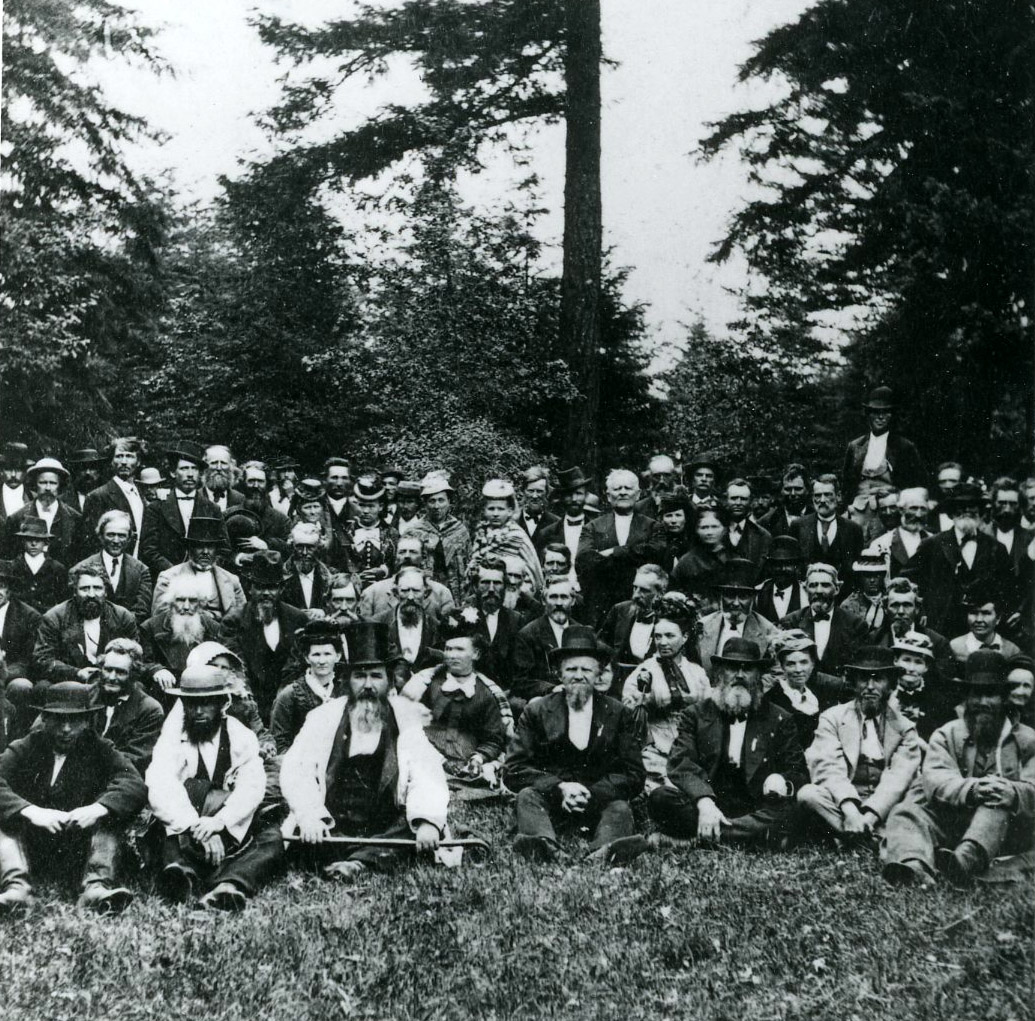 One of the first Oregon Pioneer Reunions, Aurora, 1874; Meek is among them..
