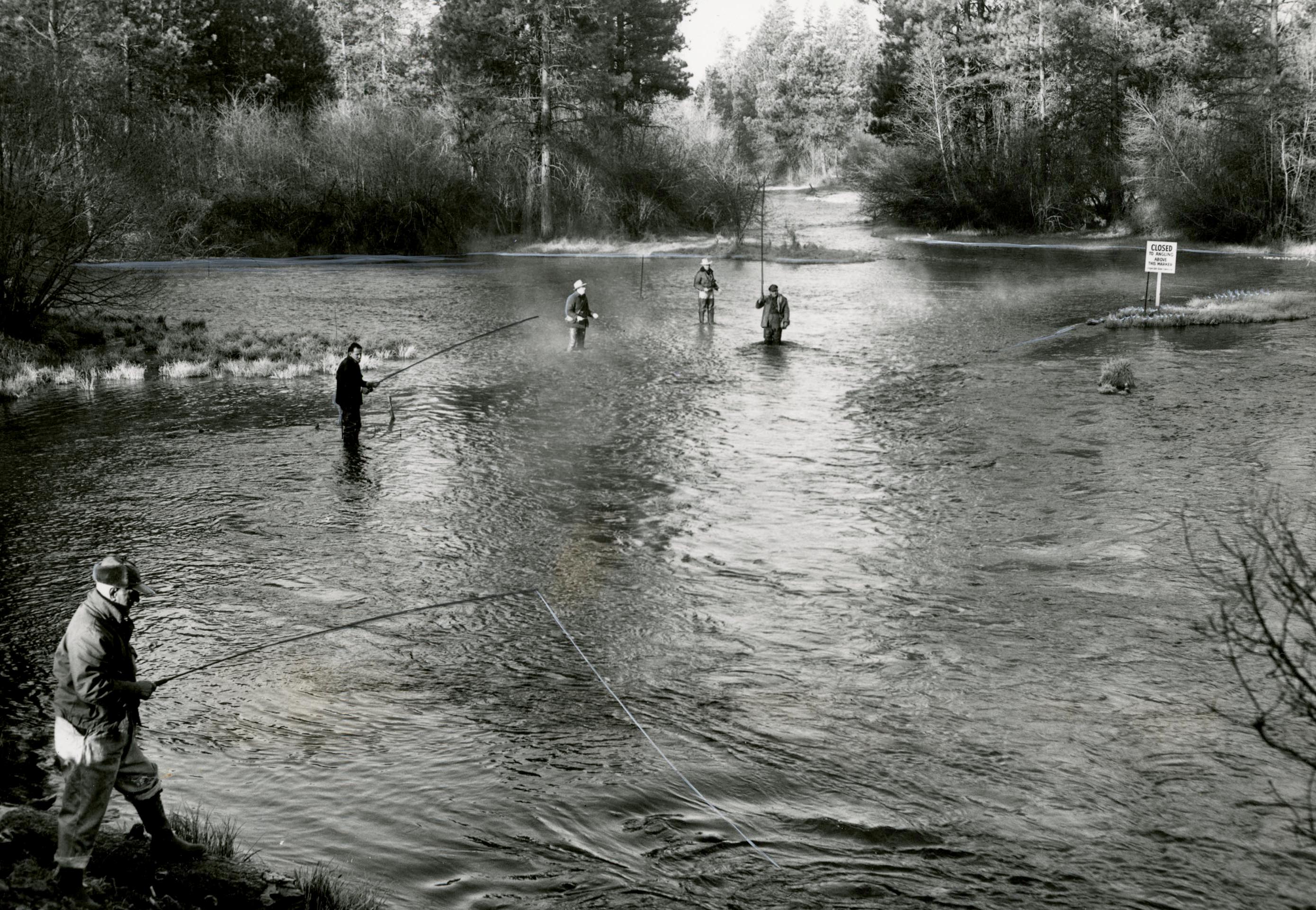 Fishing for trout on the Metolius River, near Camp Sherman, 1954.
