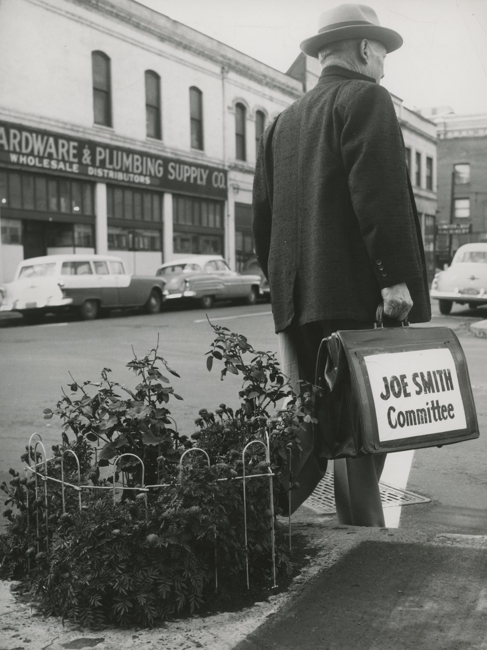 In 1946, Fagan watched from his office window as a traffic median was being constructed on Front Avenue (now Naito Parkway). One raised concrete bed had a hole in the middle for a traffic light. The median was eventually finished, but the traffic light was never installed, leaving a hole in the concrete that was soon filled with weeds and trash.
