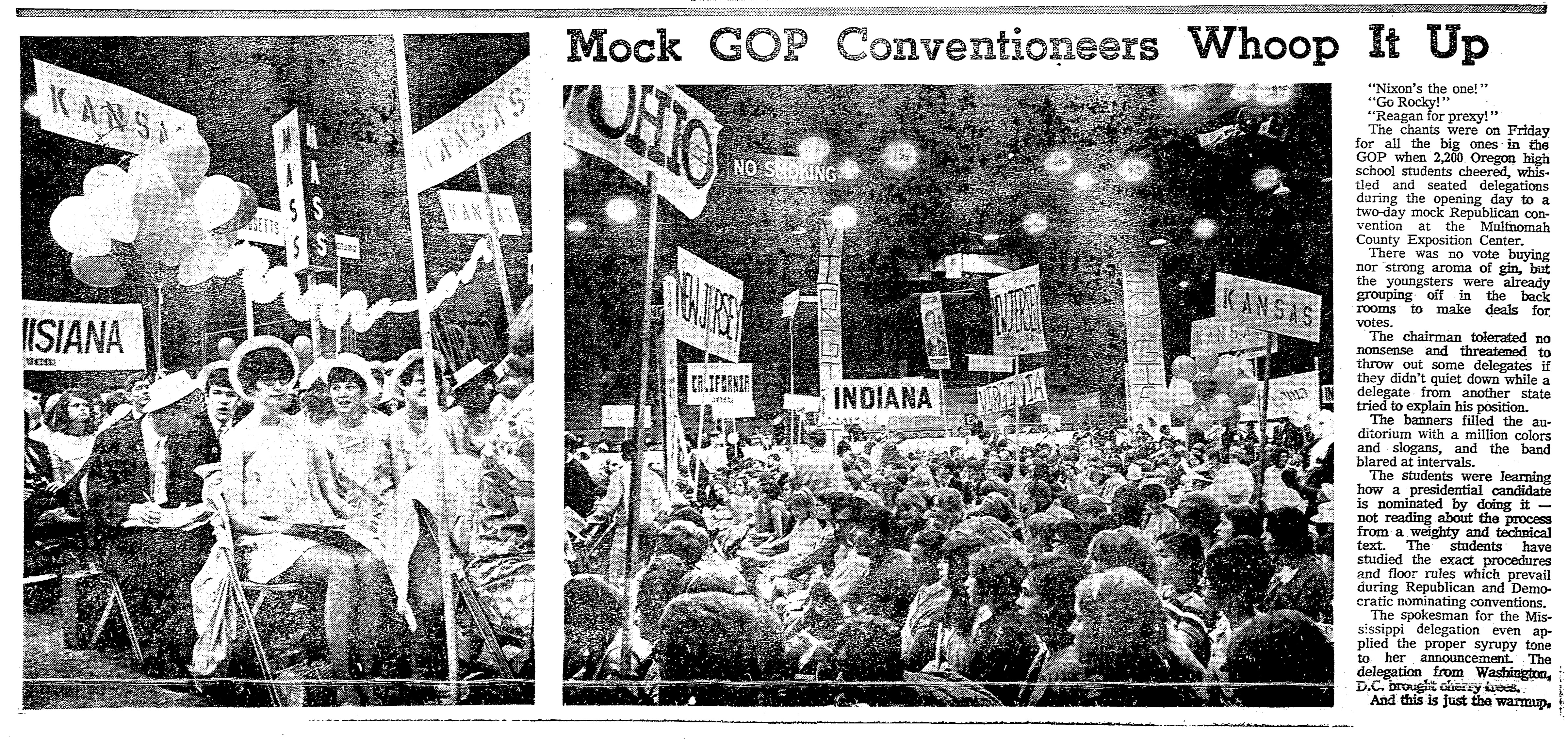"Mock GOP Conventioneers Whoop It Up," Oregonian, May 11, 1968.