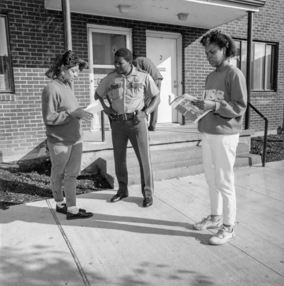Charles Moose visits residents of Iris Court Housing, Portland.