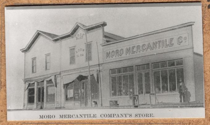 The Tenino band of Warm Springs Indians gathered food and hunted game between the Deschutes and John Day rivers in present-day Sherman County. They traded with tribes throughout the region at Celilo Falls and fished for salmon on the Columbia River. The first EuroAmericans arrived in the area during the 1860s. Henry Barnum, who settled in the area in 1868, is credited as Moro’s founder. There are conflicting stories on how the town received its name. One version states that it was named after Moro, Illinois, a former home of Sherman County Judge O.M. Scott. Another is that it was named for the Moore brothers, timber barons from Linkville (Klamath Falls) who expressed interest in the townsite.