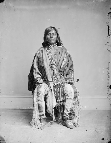 Chief Tamason or Timothy (Nez Perce) holding an elbow pipe, 1868.