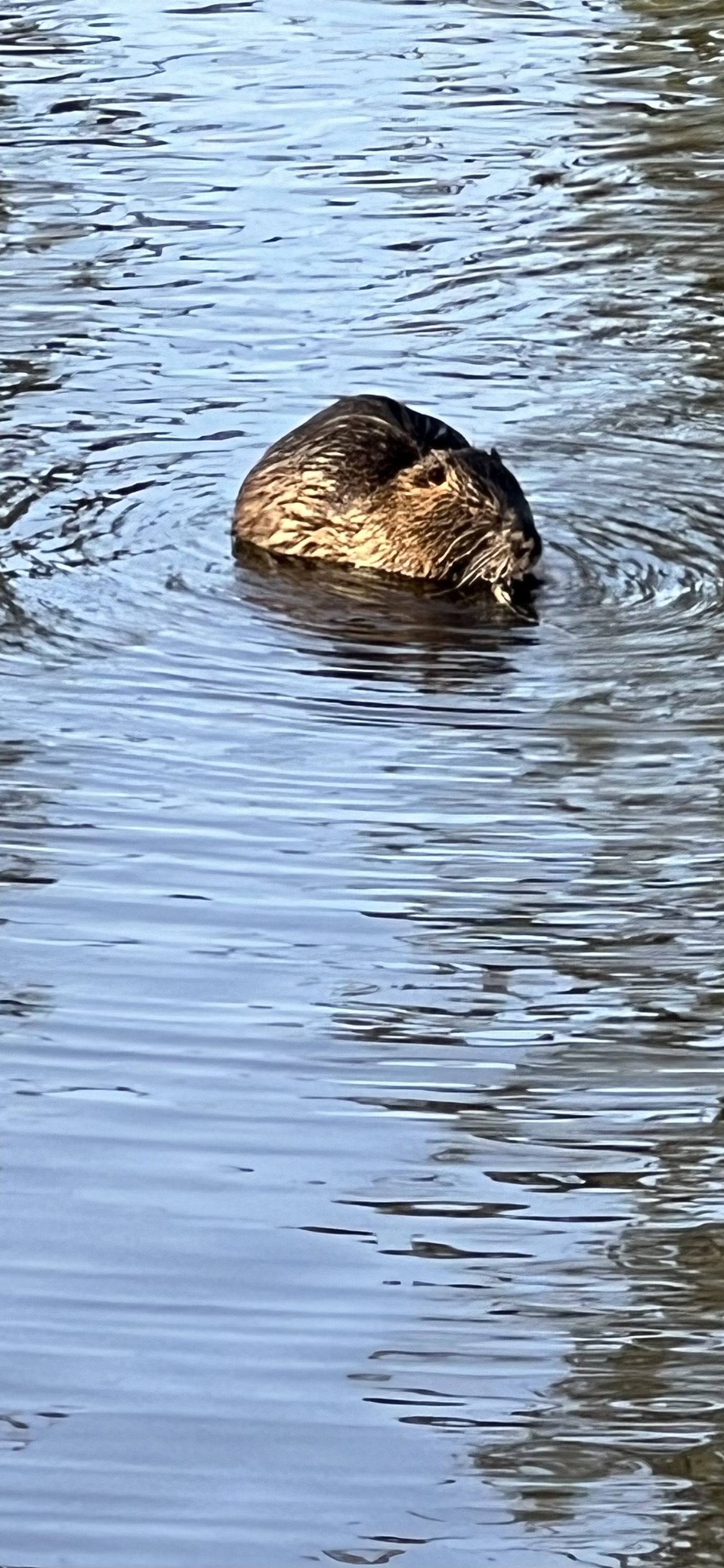 A nutria in the lake at Browns Ferry Park, Tualatin, 2024.