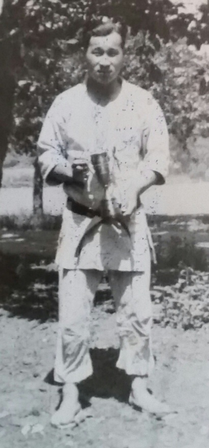 Onchi Sensei with his winning trophy at an Obukan Judo tournament.