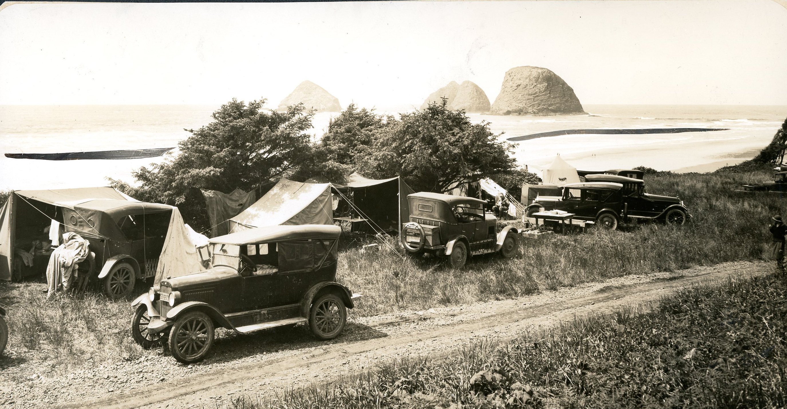 ![]()  View of Seal Rocks from the automobile campground, Oceanside, 1930. Oregon Historical Society Research Library, Arthur Prentiss, ba013932, photo file 813b