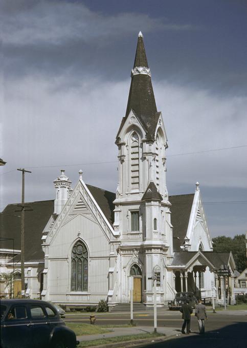Of special interest inside the building are the large "Consider the Lilies" window—one of several prominent leaded, stained glass windows made in the Portland studio of the Povey Brothers—and a tracker-action, Hook and Hastings pipe organ that was brought around Cape Horn and then transported by ox-cart from San Francisco. Restored to its original beauty and sound in 1997, this instrument attracts musicians from around the world. The auditorium's acoustics are excellent, and its original wooden pews seat 300 for musical events. Audience members can gaze at the graceful Gothic curves of the vaulted ceiling structure and the details of the cast iron and plaster Corinthian support columns.