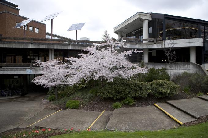 Solar panels on the Erb Memorial Union building, University of Oregon, 2008.